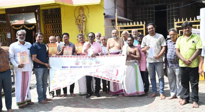 ನಗರದ ಕಾಳಿದಾಸ ರಸ್ತೆಯಲ್ಲಿರುವ ಲಕ್ಷ್ಮೀನರಸಿಂಹ ದೇವಸ್ಥಾನದಲ್ಲಿ ಮೈಸೂರು ಜಿಲ್ಲಾ ಬ್ರಾಹ್ಮಣ ಯುವ ವೇದಿಕೆ ವತಿಯಿಂದ ಅರ್ಚಕರು ಹಾಗೂ ಪುರೋಹಿತರಿಗೆ ಸಮಾವೇಶದ ಆಹ್ವಾನ ಪತ್ರಿಕೆ ನೀಡಿ ಆಹ್ವಾನಿಸಿ ಅವರು ಮಾತನಾಡಿದರು.