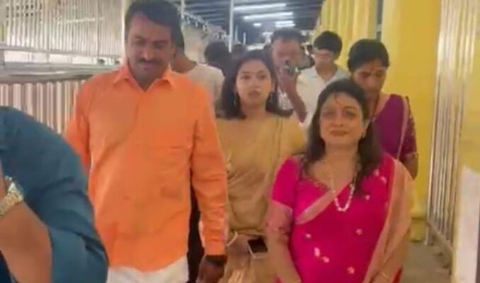 ಮೈಸೂರು: ಕೊನೆಯ ಆಷಾಢ ಶುಕ್ರವಾರ ಪ್ರಯುಕ್ತ ಹಿರಿಯ ನಟಿ ಭವ್ಯ ಅವರು ಚಾಮುಂಡಿ ಬೆಟ್ಟಕ್ಕೆ ಆಗಮಿಸಿದ್ದರು.
