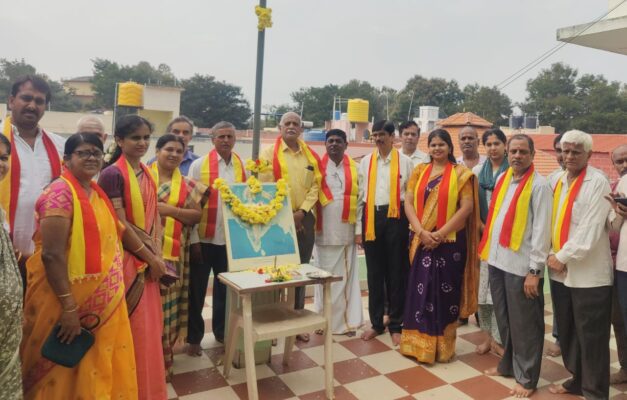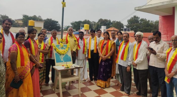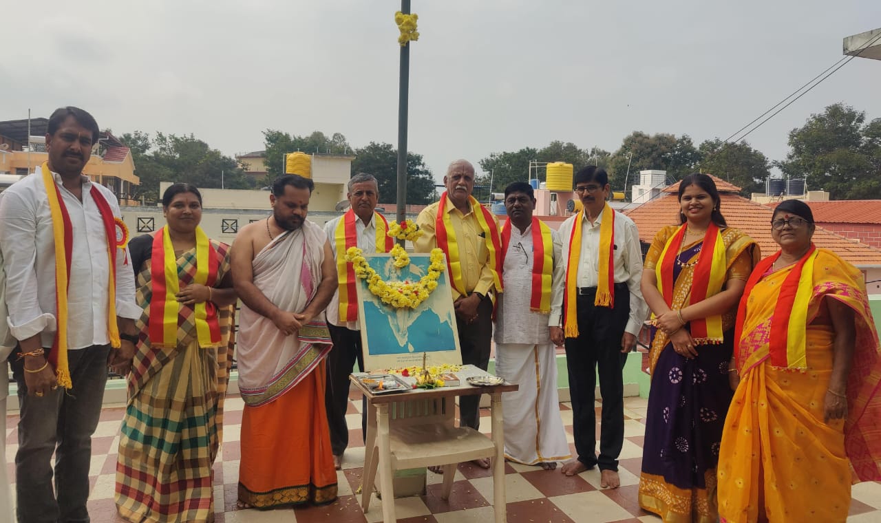 ಶ್ರೀ‌ ಭುವನೇಶ್ವರಿ‌ ದೇವಿಯ ಭಾವಚಿತ್ರ ಇಟ್ಟು ಪೂಜೆ ಸಲ್ಲಿಸಿ ಕನ್ನಡ ಧ್ವಜಾರೋಹಣ ಮಾಡಲಾಯಿತು.