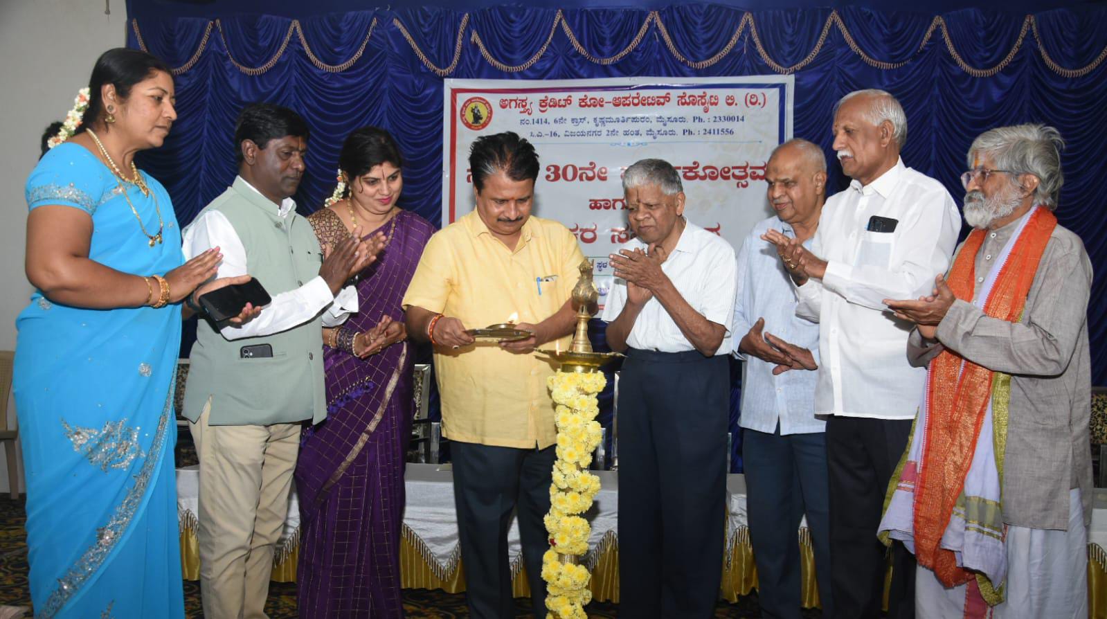 ಮೈಸೂರು: ಅಗಸ್ತ್ಯ ಕ್ರೆಡಿಟ್ ಕೋ ಆಪರೇಟಿವ್ ಸೊಸೈಟಿಯ 30ನೇ ವಾರ್ಷಿಕೋತ್ಸವ ಸಂದರ್ಭದಲ್ಲಿ ಜಿಲ್ಲಾ ರಾಜ್ಯೋತ್ಸವ ಪ್ರಶಸ್ತಿ ಪುರಸ್ಕೃತರನ್ನು ಸನ್ಮಾನಿಸುವ ಮೂಲಕ ಅರ್ಥಪೂರ್ಣವಾಗಿ ಆಚರಿಸಲಾಯಿತು