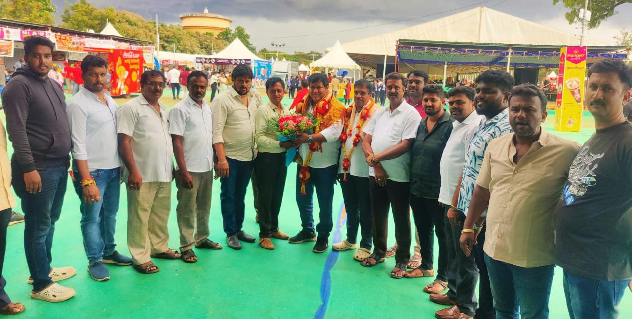 ಜಿ ಶ್ರೀನಾಥ್ ಬಾಬು ಮತ್ತು ರಘುರಾಜ್ ಅರಸ್ ಅವರಿಗೆ ಮಹಾರಾಜ ಕಾಲೇಜು ಮೈದಾನದಲ್ಲಿ ನಡೆಯುತ್ತಿರುವ ಆಹಾರ ಮೇಳದಲ್ಲಿ ಆಹಾರ ಭದ್ರತೆ ಮತ್ತು ಸುರಕ್ಷತೆ ಪ್ರಾಧಿಕಾರ ಜಿಲ್ಲಾ ಅಂಕಿತ ಅಧಿಕಾರಿ ಡಾ ಕಾಂತರಾಜು ಅವರು ಹೂಗೊಚ್ಚ ನೀಡಿ ಶುಭ ಹಾರೈಸಿದರು