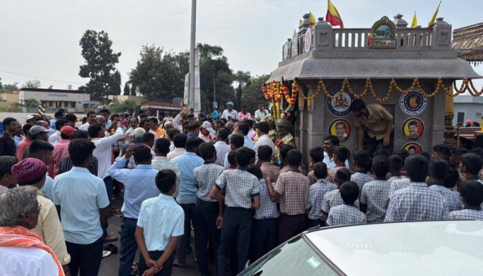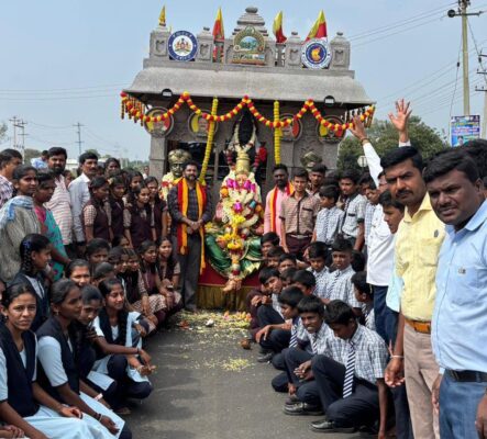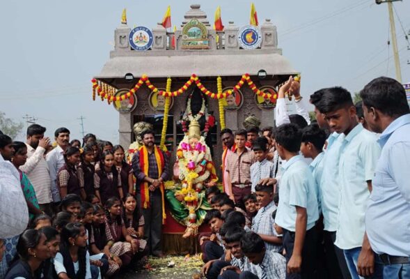 ಸುವರ್ಣ ಕರ್ನಾಟಕ ರಕ್ಷಣಾ ಸೇನೆ‌ ಸಂಸ್ಥಾಪಕರೂ‌ ಹಾಗೂ ರಾಜ್ಯಾಧ್ಯಕ್ಷ ಡಾ.ಎಸ್. ರಾಘವೇಂದ್ರ ಗೌಡರ ನೇತೃತ್ವದಲ್ಲಿ ಪದಾಧಿಕಾರಿಗಳು ಮತ್ತು ಸಿದ್ದಾಪುರ ಶಾಲಾ ಕಾಲೇಜು ವಿದ್ಯಾರ್ಥಿಗಳು ಹಾಗೂ ಸ್ಥಳೀಯರು ರಥವನ್ನು ಸಂಭ್ರಮದಿಂದ ಸ್ವಾಗತಿಸಿದರು.