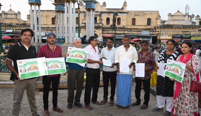ಮೈಸೂರಿನ ದೇವರಾಜ ಮಾರುಕಟ್ಟೆಯ ಚಿಕ್ಕ ಗಡಿಯಾರ ಮುಂಭಾಗ ಅಖಿಲ ಭಾರತೀಯ ಗ್ರಾಹಕ ಪಂಚಾಯತ್ ಮೈಸೂರು ಘಟಕದ ವತಿಯಿಂದ ಗ್ರಾಹಕರಿಗೆ ಗ್ರಾಹಕರ ಕಾಯ್ದೆಗಳ ಬಗ್ಗೆ ಬಿತ್ತಿಪತ್ರ ಹಿಡಿದು, ಕರಪತ್ರ ನೀಡಿ ಜಾಗೃತಿ ಮೂಡಿಸಲಾಯಿತು.