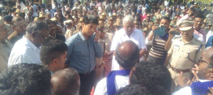 ನಂತರ ಜಿಲ್ಲಾಧಿಕಾರಿ ಲಕ್ಷ್ಮೀಕಾಂತರೆಡ್ಡಿ ಅವರು ಮತ್ತು ಪೊಲೀಸ್ ಅಧಿಕಾರಿಗಳು ಕಾರ್ಯಕರ್ತರನ್ನು ಸಮಾಧಾನಪಡಿಸಲು ಯತ್ನಿಸಿದರು.ಆಗ ಅವರೊಂದಿಗೆ ವಾಗ್ವಾದ ನಡೆಸಿದರು.