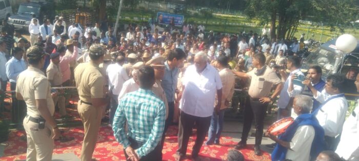 ಈ ವೇಳೆ ನೂರಾರು ದಲಿತ ಸಂಘರ್ಷ ಸಮಿತಿ ಕಾರ್ಯಕರ್ತರು ದಾವಿಸಿ ಜಿಲ್ಲಾಡಳಿತ ಹಮ್ಮಿಕೊಂಡಿದ್ದ ಈ