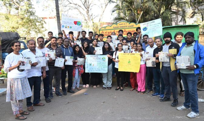 ಆರ್ಟ್ ಆಫ್ ಲಿವಿಂಗ್ ಹಾಗೂ ಅಪೂರ್ವ ಸ್ನೇಹ ಬಳಗದ ವತಿಯಿಂದ ನಂಜು ಮಳಿಗೆ ಮಾರ್ಕೆಟ್ ಸುತ್ತಮುತ್ತ 2024ರ ಕ್ಯಾಲೆಂಡರ್ ನಲ್ಲಿ ಆರ್ಟ್ ಆಫ್ ಲಿವಿಂಗ್ ಮಕ್ಕಳೆ ಸಿದ್ದಪಡಿಸಿದ ಪೇಪರ್ ಬ್ಯಾಗನ್ನು ನೀಡಿ ಪ್ಲಾಸ್ಟಿಕ್ ನಿಂದ ಆಗುವ ಅನಾನುಕೂಲಗಳ ಬಗ್ಗೆ ಜಾಗೃತಿ ಮೂಡಿಸಿದರು.