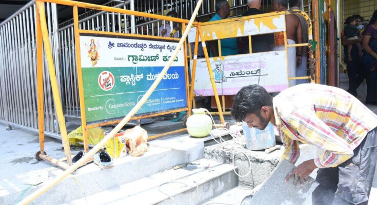 ಪಿಡಬ್ಲ್ಯು ವತಿಯಿಂದ ಚಾಮುಂಡೇಶ್ವರಿ ಪ್ರಾಧಿಕಾರಕ್ಕೆ ಹೊಸ ಬ್ಯಾರಿಕೆಡ್ ಹಾಗೂ ಸಿಮೆಂಟು ಕಾಮಗಾರಿಗಳನ್ನು ನಡೆಸಲಾಗುತ್ತಿದೆ,ಇನ್ನೆರಡು ದಿನದಲ್ಲಿ ಅದು ಮುಕ್ತಾಯವಾಗುತ್ತದೆ.