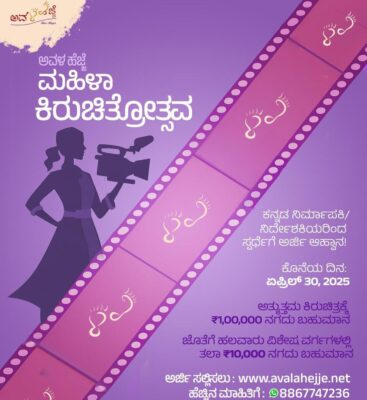 ಬೆಂಗಳೂರು: ಬೆಂಗಳೂರಿನಲ್ಲಿ ಜೂನ್ ತಿಂಗಳಿನಲ್ಲಿ ಅವಳ ಹೆಜ್ಜೆ ಮಹಿಳಾ ಕಿರುಚಿತ್ರೋತ್ಸವ-2025 ಹಮ್ಮಿಕೊಳ್ಳಲಾಗಿದ್ದು,ಇದಕ್ಕೆ ಸಂಬಂಧಿಸಿದಂತೆ ಕಿರುಚಿತ್ರ ಸ್ಪರ್ಧೆ ಮತ್ತು ಚಿತ್ರಕಥೆ ಸ್ಪರ್ಧೆ ಯನ್ನು ಏರ್ಪಡಿಸಲಾಗಿದೆ.