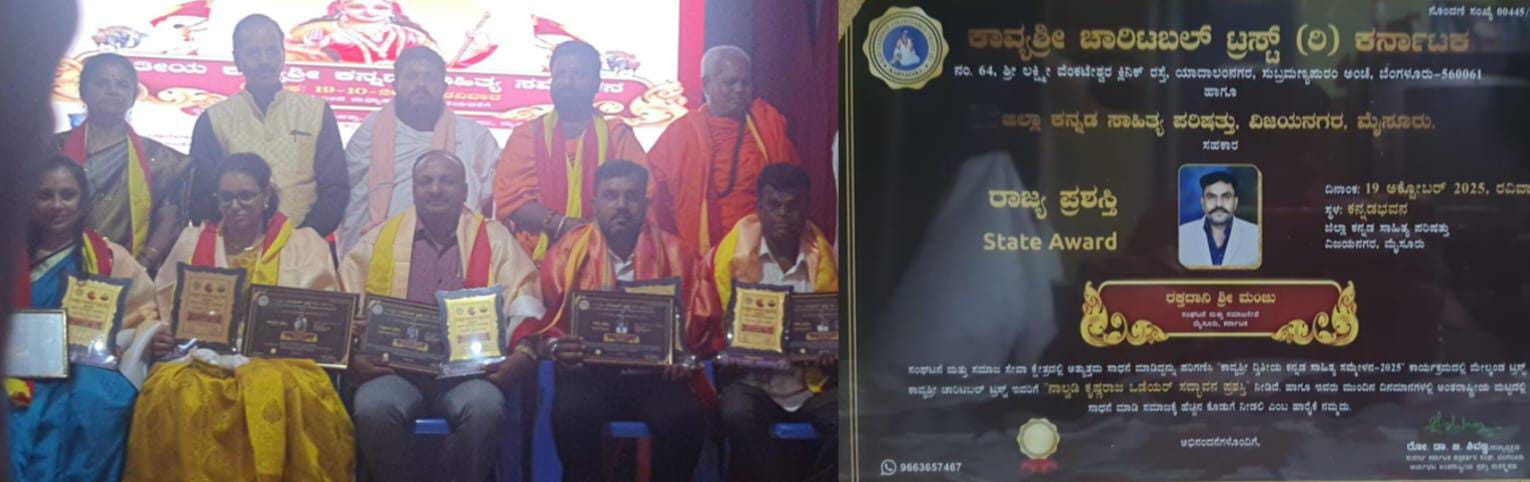 ಈ ಪ್ರಶಸ್ತಿಯನ್ನು ಯನ್ನು ಕಾವ್ಯಶ್ರೀ ಚಾರಿಟಬಲ್ ಟ್ರಸ್ಟ್ ಅವರು ಆಯೋಜಿಸಿದ್ದ ಕಾವ್ಯಶ್ರೀ ದ್ವಿತೀಯ ಕನ್ನಡ ಸಾಹಿತ್ಯ ಸಮ್ಮೇಳನ-2025 ಕಾರ್ಯಕ್ರಮದ ಅಂಗವಾಗಿ ಪ್ರದಾನ ಮಾಡಲಾಯಿತು.