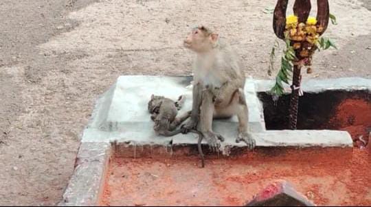 ಕೋತಿಮರಿಯ ಮೃತದೇಹ ಕೊಳೆತಿದ್ದರೂ ಬಿಡದೆ ತನ್ನ ಮಡಿಲಿನಲ್ಲಿಟ್ಟು ಆರೈಕೆ ಮಾಡಲು ಯತ್ನಿಸುವ ದೃಶ್ಯ ನೋಡುಗರ ಮನಕಲುಕುವಂತೆ ಮಾಡಿದೆ.