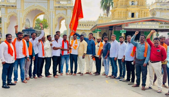 ಮೈಸೂರು: ಬಾಂಗ್ಲಾದಲ್ಲಿ ಹಿಂದೂಗಳ ಮೇಲೆ ನಡೆಯುತ್ತಿರುವ ಹಲ್ಲೆ,ದೌರ್ಜನ್ಯ ಖಂಡಿಸಿ ಮೈಸೂರಿನ ಕೋಟೆ ಆಂಜನೇಯ ಸ್ವಾಮಿ ದೇವಸ್ಥಾನದ ಮುಂಭಾಗ ವಿವಿಧ ಸಂಘಟನೆಗಳು ಪ್ರತಿಭಟನೆ ನಡೆಸಿದವು.