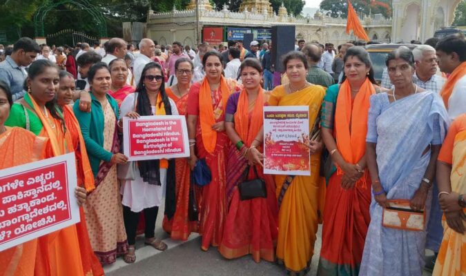 ಬಾಂಗ್ಲಾದೇಶದಲ್ಲಿ ನಿರಂತರವಾಗಿ ಹಿಂದೂಗಳ ಮೇಲೆ ದೌರ್ಜನ್ಯ ನಡೆಯುತ್ತಿದೆ. ಇಸ್ಲಾಂ ಧರ್ಮಕ್ಕೆ ಮತಾಂತರ ಮಾಡಲಾಗುತ್ತಿದೆ, ಹೆಣ್ಣು ಮಕ್ಕಳ ಮೇಲೆ ದೌರ್ಜನ್ಯ ಹೆಚ್ಚಾಗಿದೆ, ಅಲ್ಲಿನ ಸರ್ಕಾರ ಹಿಂದೂಗಳಿಗೆ ರಕ್ಷಣೆ ಕೊಡದೆ ನಿರ್ಲಕ್ಷ್ಯ ತೋರಿದೆ ಎಂದು ಪ್ರತಿಭಟನಾಕಾರರು ಆಕ್ರೋಶ ವ್ಯಕ್ತಪಡಿಸಿದರು.