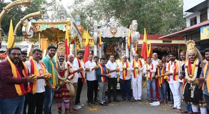 ದೇವರಾಜ ಮಾರ್ಕೆಟ್ ಯುವ ಬ್ರಿಗೇಡ್ ವತಿಯಿಂದ 17ನೇ ವರ್ಷದ ಕನ್ನಡ ರಾಜ್ಯೋತ್ಸವ ಅಂಗವಾಗಿ ಆಯೋಜಿಸಿದ್ದ ವಿವಿಧ ಕಲಾತಂಡದೊಂದಿಗೆ ತಾಯಿ ಭುವನೇಶ್ವರಿ,ನಾಲ್ವಡಿ ಕೃಷ್ಣರಾಜ ಒಡೆಯರ್ ಹಾಗೂ ಭಾರತ ರತ್ನ ಸರ್ ಎಂ ವಿಶ್ವೇಶ್ವರಯ್ಯ ಅವರ ಮೂರ್ತಿಯನ್ನು ಒಳಗೊಂಡ ಭವ್ಯ ಮೆರವಣಿಗೆಗೆ ಚಾಲನೆ ನೀಡಿ ಸಂದೀಪ್ ಮಾತನಾಡಿದರು.