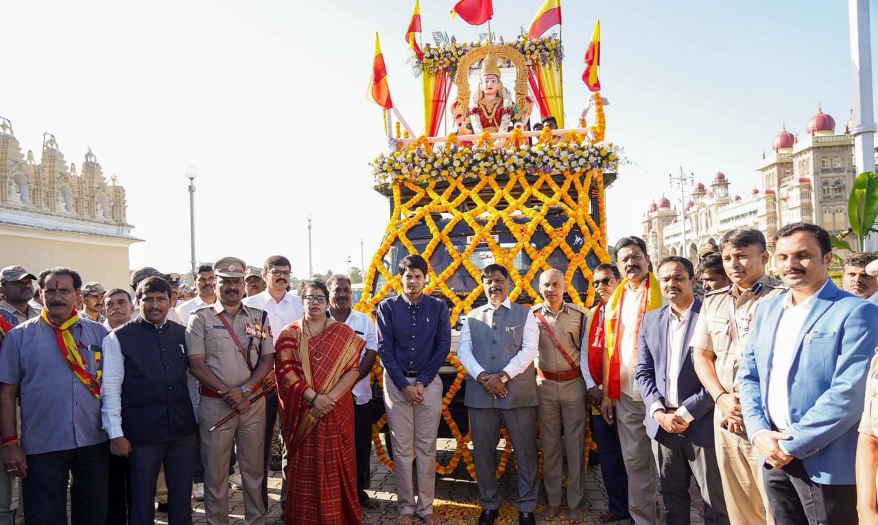 ಪೂಜೆಯ ನಂತರ ಶ್ರೀ ಭುವನೇಶ್ವರಿ ತಾಯಿಯ ಮೆರವಣಿಗೆ ರಥಕ್ಕೆ ಸಚಿವರು ಚಾಲನೆ ನೀಡಿದರು.