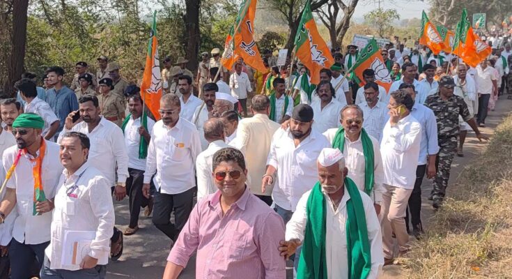 ಬೆಳಗಾವಿ: ರಾಜ್ಯ ಸರಕಾರದ ರೈತ ವಿರೋಧಿ ನೀತಿಗಳನ್ನು ಖಂಡಿಸಿ ಬೆಳಗಾವಿಯಲ್ಲಿ ಬಿಜೆಪಿಗರು ಬೃಹತ್ ಪ್ರತಿಭಟನೆ ನಡೆಸಿದರು.