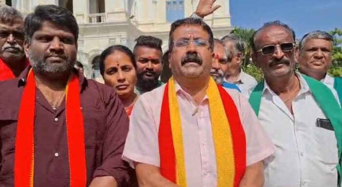 ಪ್ರತಿಭಟನೆ ನೇತೃತ್ವ ವಹಿಸಿದ್ದ ಕರ್ನಾಟಕ ಸೇನಾ ಪಡೆ ಜಿಲ್ಲಾಧ್ಯಕ್ಷ ತೇಜೇಶ್ ಲೋಕೇಶ್ ಗೌಡ ಮಾತನಾಡಿ, ರಾಜ್ಯ ಸರ್ಕಾರ ಅಧಿಕಾರಕ್ಕೆ ಬಂದಾಗಿನಿಂದ ದಿನ ಬೆಳಗಾದರೆ ಒಂದಲ್ಲ ಒಂದು ಬೆಲೆ ಏರಿಕೆ ಮಾಡಿ, ಕನ್ನಡಿಗರ ರಕ್ತ ಹೀರುತ್ತಿದೆ ಎಂದು ಆಕ್ರೋಶ ವ್ಯಕ್ತಪಡಿಸಿದರು.