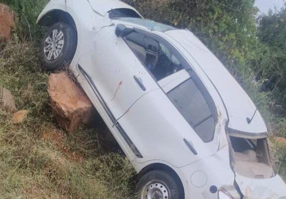 ಪಾವಗಡ ತಾಲೂಕಿನ ಕಡಪಲಕೆರೆಗೆ ನರಸಿಂಹ ಮೂರ್ತಿ ಅವರ ಮಗ ನರೇಶ್ ಅವರನ್ನು ಮಾತನಾಡಿಸಿಕೊಂಡು ಕಾರಿನಲ್ಲಿ ಹಿಂತಿರುವಾಗ ನಾಯಿ ಅಡ್ಡ ಬಂದ ಕಾರಣ ಅದನ್ನು ತಪ್ಪಿಸಲು ಹೋಗಿ ಪಕ್ಕದಲ್ಲಿದ್ದ ಹಳ್ಳಕ್ಕೆ ಕಾರು ಉರುಳಿದೆ.