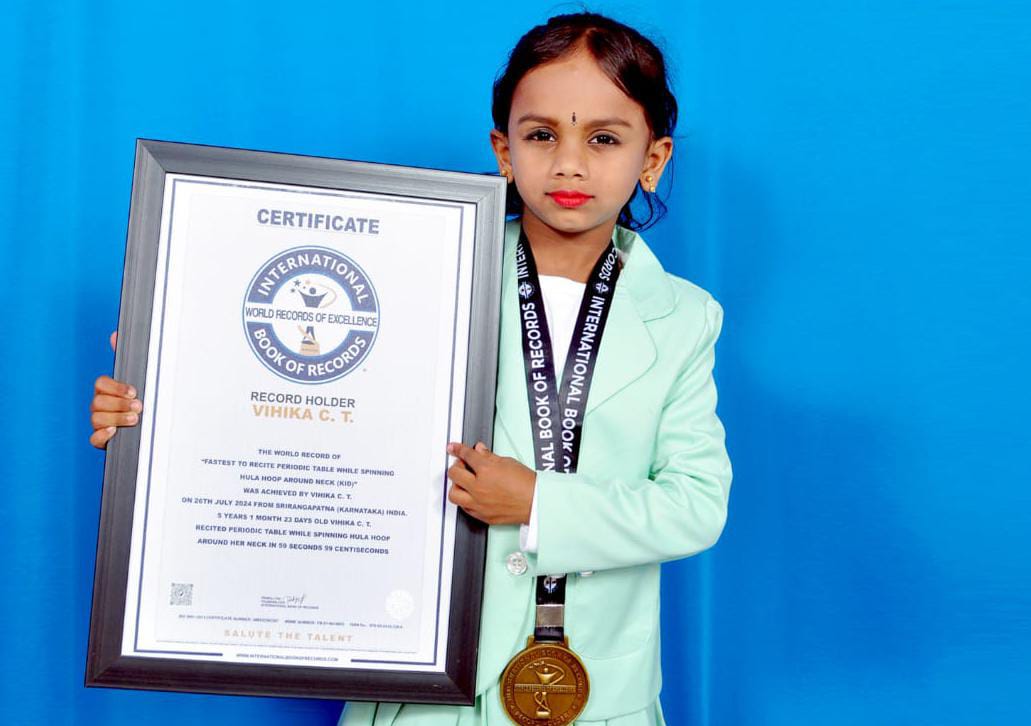 ವಿಹಿಕಾಗೆ ಇನ್ನೂ 5 ವರ್ಷ 3 ತಿಂಗಳು ಅಷ್ಟೆ.ಈಗಾಗಲೇ ಇಂಟರ್ ನ್ಯಾಷನಲ್ ವರ್ಲ್ಡ್ ರೆಕಾರ್ಡ್ ಆಫ್ ಎಕ್ಸಲೆನ್ಸ್, ಬುಕ್ ಆಫ್ ರೆಕಾರ್ಡ್ಸ್ ಮಾಡಿದ್ದಾಳೆ.