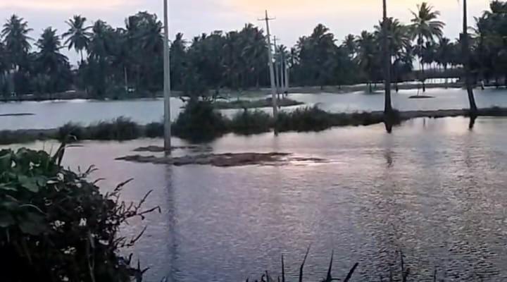 ನಿನ್ನೆ ವರೆಗೂ ನದಿ ಪಾತ್ರದಲ್ಲಿ ತುಂಬಿ ಹರಿಯುತ್ತಿದ್ದ ನೀರು ಇಂದು ಜಮೀನುಗಳಿಗೆ ನುಗ್ಗಿದೆ.