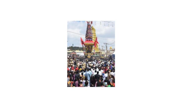 ರಥೋತ್ಸವದಲ್ಲಿ ಪ್ರಮೋದಾದೇವಿ ಒಡೆಯರ್, ಯದುವೀರ್, ಪತ್ನಿ ತ್ರಿಷಿಕಾಕುಮಾರಿ ಭಾಗಿಯಾಗಿ