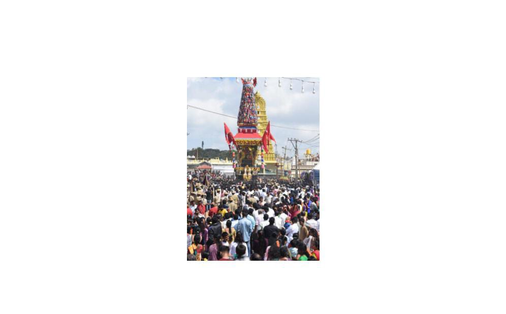 ಮೈಸೂರು: ಚಾಮುಂಡೇಶ್ವರಿ ತಾಯಿ ದೊಡ್ಡ ರಥೋತ್ಸವ ಸಹಸ್ರಾರು ಭಕ್ತರ ಸಮ್ಮುಖದಲ್ಲಿ ಅತ್ಯಂತ ವೈಭವದಿಂದ ಜರುಗಿತು.