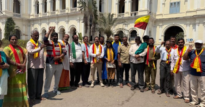 ಮೈಸೂರಿನ ಹಳೇ ಜಿಲ್ಲಾಧಿಕಾರಿಗಳ ಕಚೇರಿ ಮುಂಭಾಗ ಕರ್ನಾಟಕ ಸೇನಾ ಪಡೆ ವತಿಯಿಂದ ಪ್ರತಿಭಟನೆ ನಡೆಸಿ ಕೂಡಲೇ ಕಿಡಿಗೇಡಿಗಳನ್ನು ಬಂಧಿಸಿ ಸೂಕ್ತ ಕಾನೂನು ಕ್ರಮಕೈಗೊಳ್ಳಬೇಕು ಎಂದು ಆಗ್ರಹಿಸಲಾಯಿತು.