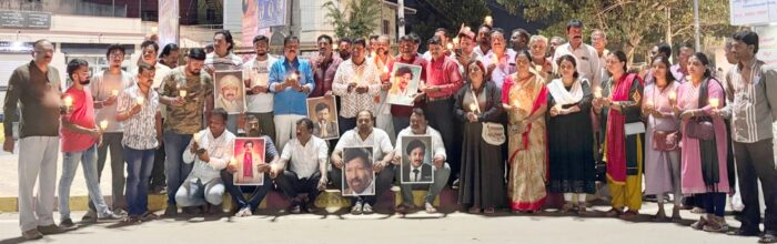 ಮೈಸೂರು: ಸಾಹಸಸಿಂಹ ಡಾ. ವಿಷ್ಣುವರ್ಧನ್ ಅವರ 15ನೇ ವರ್ಷದ ಪುಣ್ಯಸ್ಮರಣೆ ಅಂಗವಾಗಿ ಮೈಸೂರಿನ ಚಾಮುಂಡಿ ಪುರಂ ವೃತ್ತದಲ್ಲಿ ಶ್ರೀರಾಮ ಗೆಳೆಯರ ಬಳಗದ ವತಿಯಿಂದ ವಿಷ್ಣುವರ್ಧನ್ ರವರ ಭಾವಚಿತ್ರ ಹಿಡಿದು ಮೊಂಬತ್ತಿ ಬೆಳಗಿ ಗೌರವ ಸಲ್ಲಿಸಲಾಯಿತು.