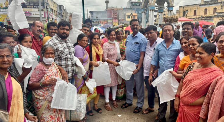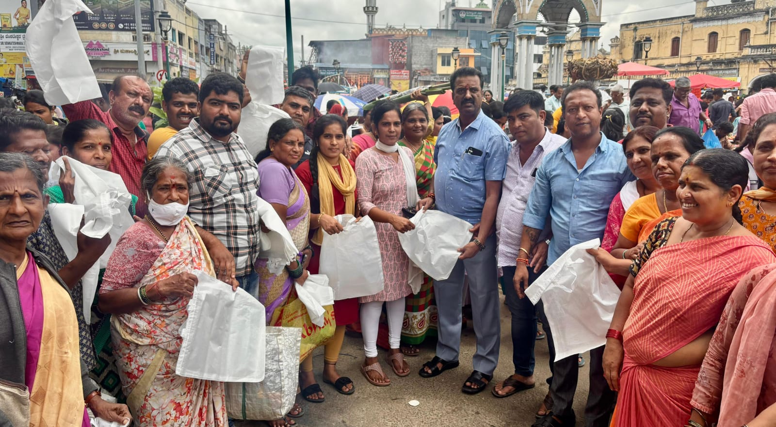 ಬಟ್ಟೆಬ್ಯಾಗ್ ವಿತರಿಸಿ ಜಾಗೃತಿ ಮೂಡಿಸಲಾಯಿತು.