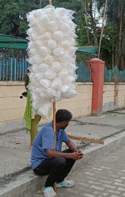 ಮಕ್ಕಳು ಅಷ್ಟೇ ಏಕೆ ದೊಡ್ಡವರಿಗೂ ಆಕರ್ಷಕ ತಿನಿಸಾದ ಈ ಬಾಂಬೆ ಮಿಠಾಯಿ ಅಥವಾ ಕಾಟನ್ ಕ್ಯಾಂಡಿಯ ರೂಪ ಮಾಸಲಾಗಿ ಆಕರ್ಷಣೆ ಕಳೆದುಕೊಂಡಿದೆ.