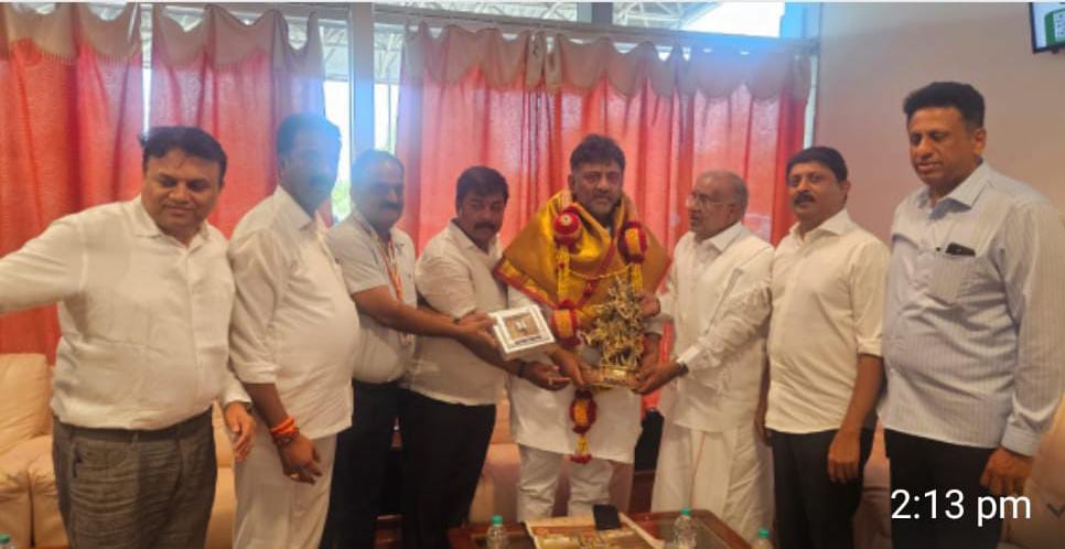 ಮೈಸೂರು: ಉಪಮುಖ್ಯಮಂತ್ರಿ ಡಿ. ಕೆ. ಶಿವಕುಮಾರ್ ಮತ್ತು ನಗರಾಭಿವೃದ್ಧಿ ಸಚಿವ ಸುರೇಶ್ ಹಾಗೂ ಉನ್ನತ ಶಿಕ್ಷಣ ಸಚಿವ ಡಾಕ್ಟರ್ ಎಂ ಸಿ ಸುಧಾಕರ್ ಅವರುಗಳನ್ನು ಮೈಸೂರು ಮಹಾನಗರ ಪಾಲಿಕೆ ಅಧಿಕಾರಿಗಳು ಮತ್ತು ಶಾಸಕ ಜಿ.ಟಿ.ದೇವೇಗೌಡ ಸನ್ಮಾನಿಸಿ ಶುಭ ಕೋರಿದರು.