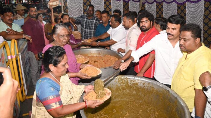ಸಾರ್ವಜನಿಕರಿಗೆ ಗೀ ರೈಸ್ ಹಾಗೂ ಚಿಕನ್ ಚಾಪ್ಸ್ ಕೊಡಮಾಡಲಾಗಿದ್ದು,ಶಾಸಕ ಹರೀಶ್ ಗೌಡ ವಿತರಿಸುವ ಮೂಲಕ ಚಾಲನೆ ನೀಡಿದರು.