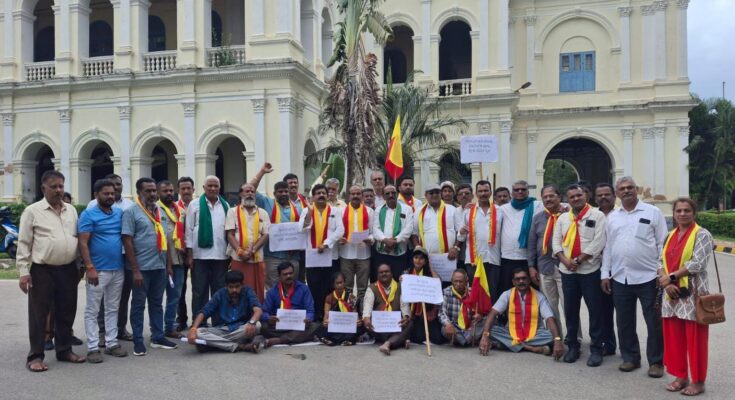 ಪ್ರತಿಭಟನೆಯ ನೇತೃತ್ವವನ್ನು ಕರ್ನಾಟಜ ಸೇನಾಪಡೆ ಜಿಲ್ಲಾಧ್ಯಕ್ಷ ತೇಜೇಶ್ ಲೋಕೇಶ್ ಗೌಡ ವಹಿಸಿದರು.