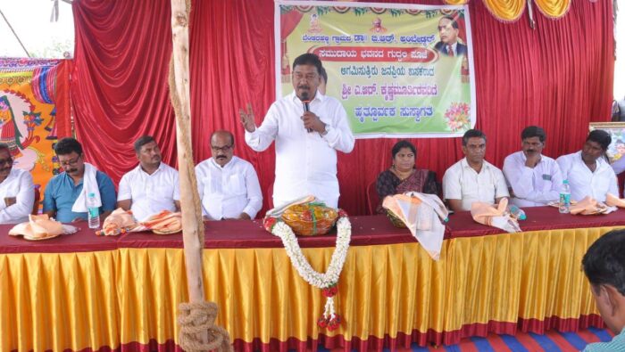 ಪಟ್ಟಣ ವ್ಯಾಪ್ತಿಯ 29ನೇ ವಾರ್ಡ್ ನ ಬೆಂಡರಹಳ್ಳಿ ಬಡಾವಣೆಯಲ್ಲಿ ಡಾ.ಬಿ.ಆರ್.ಅಂಬೇಡ್ಕರ್ ಸಮುದಾಯ ಭವನ ನಿರ್ಮಾಣಕ್ಕೆ ಎ.ಆರ್.ಕೃಷ್ಣಮೂರ್ತಿ ಶಂಕುಸ್ಥಾಪನೆ ನೆರವೇರಿಸಿದರು.