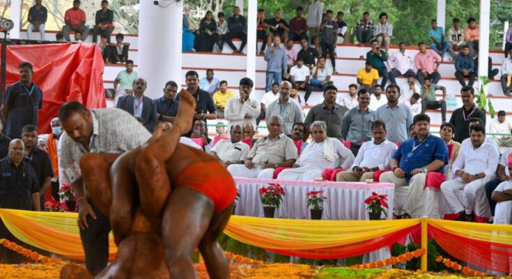 ಮೈಸೂರು: ನಾಡಹಬ್ಬ ಮೈಸೂರು ದಸರಾ ಮಹೋತ್ಸವ-2025ರ ಕುಸ್ತಿ ಪಂದ್ಯಾವಳಿಗೆ ಮುಖ್ಯಮಂತ್ರಿ ಸಿದ್ದರಾಮಯ್ಯ ಕುಸ್ತಿಪಟುಗಳಿಗೆ ಬೆನ್ನು ತಟ್ಟುವ ಮೂಲಕ ಚಾಲನೆ ನೀಡಿದರು.