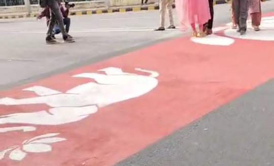 ಮೈಸೂರು: ಮೈಸೂರಿನ ಆಲ್ಬರ್ಟ್ ವಿಕ್ಟರ್ ರಸ್ತೆಯಲ್ಲಿ ಪಾದಚಾರಿಗಳು ಹಾಗೂ ವಾಹನಗಳು ಓಡಾಡುವ ಜಾಗದಲ್ಲಿ ಆನೆ ಹಾಗೂ ಕಮಲದ ಚಿತ್ರವನ್ನು ಬಿಡಿಸಿರುವುದಕ್ಕೆ ಮೈಸೂರು ರಕ್ಷಣಾ ವೇದಿಕೆ ತೀವ್ರವಾಗಿ ಆಕ್ರೋಶ ವ್ಯಕ್ತಪಡಿಸಿದೆ.