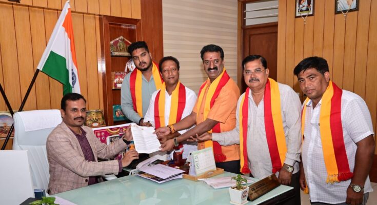 ಸಿದ್ದಾರ್ಥ ನಗರದಲ್ಲಿರುವ ಜಿಲ್ಲಾಧಿಕಾರಿ ಕಚೇರಿಗೆ ಭೇಟಿ ಭೇಟಿ ನೀಡಿ ಅಪರ ಜಿಲ್ಲಾಧಿಕಾರಿ ಡಾಕ್ಟರ್ ಶಿವರಾಜು ಅವರಿಗೆ ಕರ್ನಾಟಕ ಹಿತರಕ್ಷಣ ವೇದಿಕೆ ಅಧ್ಯಕ್ಷರಾದ ವಿನಯ್ ಕುಮಾರ್ ನೇತೃತ್ವದಲ್ಲಿ ಮೈಸೂರು ದಸರಾ ವಸ್ತುಪ್ರದರ್ಶನದಲ್ಲಿ ನಾಡಗೀತೆಗೆ ಅಪಮಾನ ಮಾಡಿದ್ದು ಪ್ರಾಧಿಕಾರದ ಅಧಿಕಾರಿಗಳ ವಿರುದ್ಧ ಜಿಲ್ಲಾಡಳಿತ ಕ್ರಮಕೈಗೊಳ್ಳುವಂತೆ ಮನವಿ