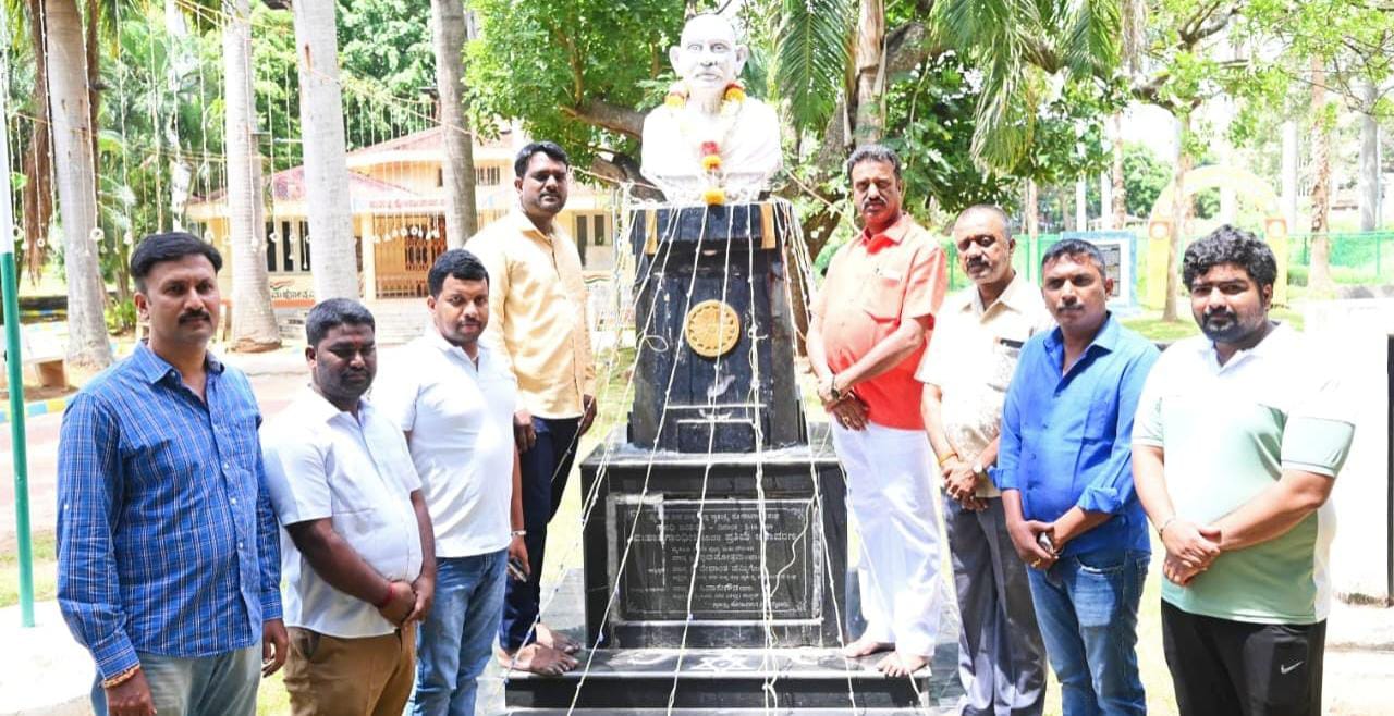 ಈ ವೇಳೆ ಮಹಾತ್ಮ ಗಾಂಧಿ ಅವರ ಪ್ರತಿಮೆಗೆ ಮಾಲಾರ್ಪಣೆ ಮಾಡಿ ಸಿಹಿ ಹಂಚಿ ಗಾಂಧಿ ಸ್ಮರಣೆ ಮಾಡಲಾಯಿತು.