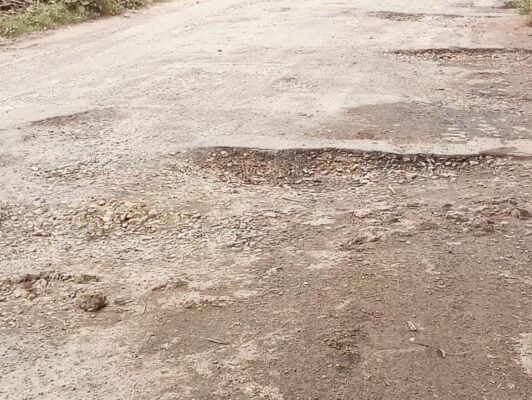 ಈಗ ಮಳೆಗಾಲ,ಗುಂಡಿಯಲ್ಲಿ ನೀರು ತುಂಬಿದರೆ ರಸ್ತೆ ಯಾವುದು ಗುಂಡಿ ಯಾವುದು ಎಂಬುದು ಗೊತ್ತಾಗುವುದಿಲ್ಲ.ಡಾಂಬರು ಕೂಡಾ ಕಿತ್ತುಹೋಗಿ ಕೆಸರುಗದ್ದೆ ಯಾಗಿದೆ.