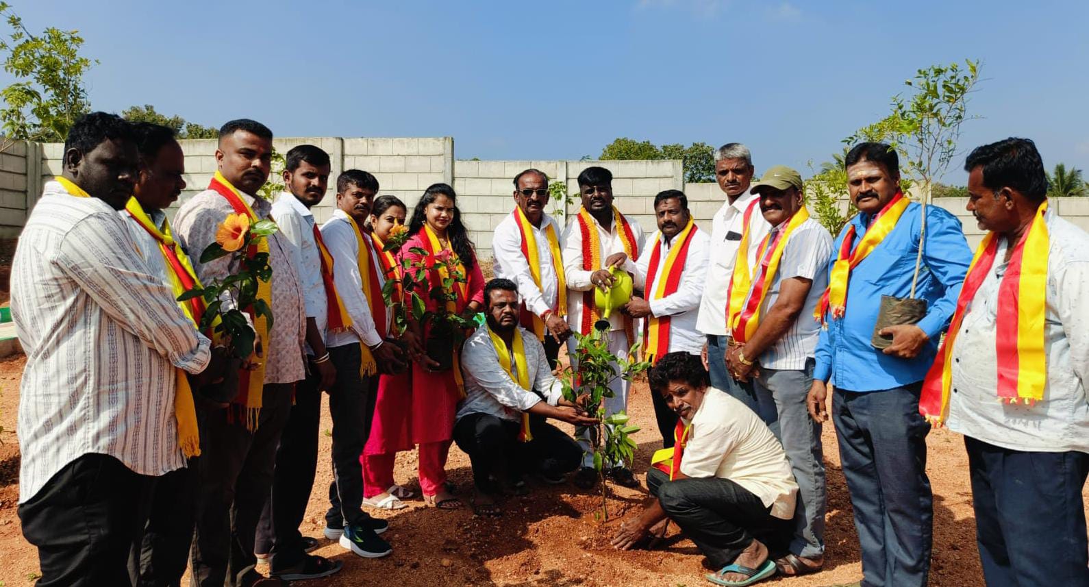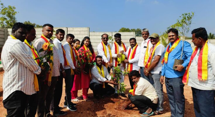 ಮಂಗಳವಾರ ಬೆಳಗ್ಗೆ ಕನ್ನಡಾಂಬೆ ರಕ್ಷಣಾ ವೇದಿಕೆ ಅಧ್ಯಕ್ಷರಾದ ಬಿ.ಬಿ. ರಾಜಶೇಖರ್ ನೇತೃತ್ವದಲ್ಲಿ ವೇದಿಕೆ ಕಾರ್ಯಕರ್ತರು ಇಲವಾಲ ಬಳಿಯ ಈರಪ್ಪನ ಕೊಪ್ಪಲು ಗ್ರಾಮದ ಉದ್ಯಾನವನದಲ್ಲಿ ೭೫