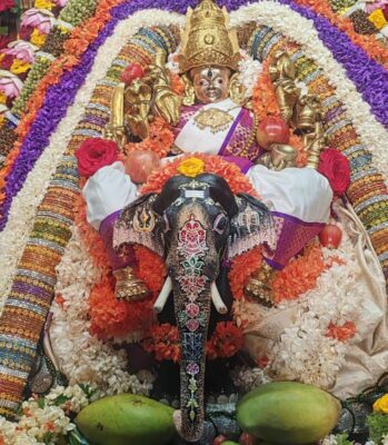 ದೇವಸ್ಥಾನದ ಹೊರಾಂಗಣ ವಿವಿಧ ಹೂಗಳಿಂದ ಅಲಂಕರಿಸಲಾಗಿತ್ತು.