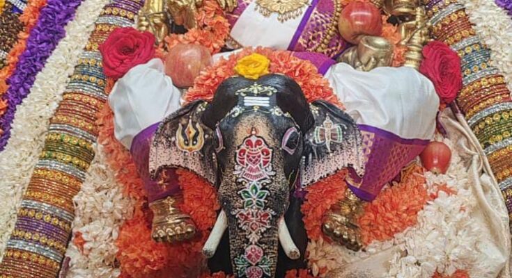 ದೇವಸ್ಥಾನದ ಹೊರಾಂಗಣ ವಿವಿಧ ಹೂಗಳಿಂದ ಅಲಂಕರಿಸಲಾಗಿತ್ತು.