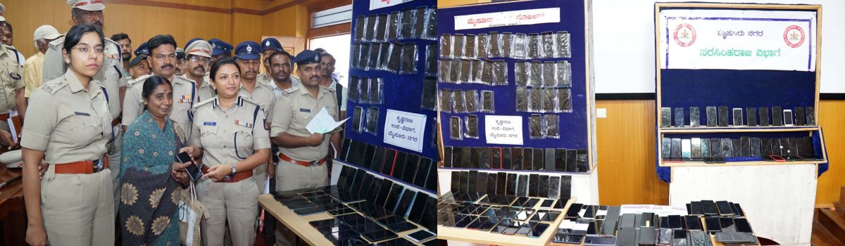 ಮೈಸೂರು ನಗರದಲ್ಲಿ ಕಳೆದು ಹೋದ ಮೊಬೈಲ್ ಫೋನ್ಗಳ ಪತ್ತೆಗಾಗಿ ಮೈಸೂರು ನಗರ ಪೊಲೀಸರು ಕಳೆದ 1 ತಿಂಗಳಿನಿಂದ ವಿಶೇಷ ಕಾರ್ಯಾಚರಣೆ ಕೈಗೊಂಡಿದ್ದು, ಒಟ್ಟು 20,00,000 ಮೌಲ್ಯದ 220 ಮೊಬೈಲ್ ಫೋನ್ಗಳನ್ನು ಪತ್ತೆ ಮಾಡಲಾಗಿದೆ ಎಂದು ಇದೇ ವೇಳೆ ಪೊಲೀಸ್ ಆಯುಕ್ತರು ತಿಳಿಸಿದರು.