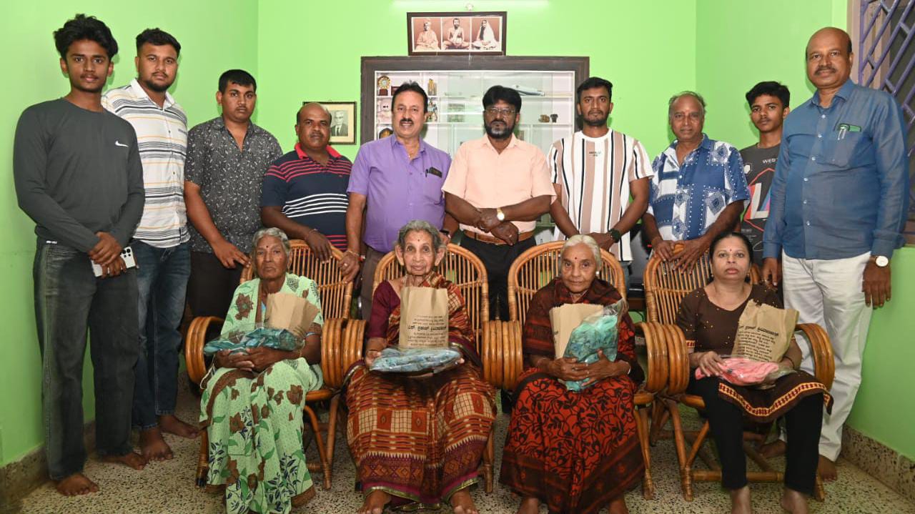ಈ ವೇಳೆ ಹೊಸ ಸೀರೆ,ಹಣ್ಣು ಹಂಪಲು ವಿತರಿಸಿ ಹಿರಿಯರ ಯೋಗ ಕ್ಷೇಮ ವಿಚಾರಿಸಿ ಗೌರಿ ಗಣೇಶ ಹಬ್ಬದ ಶುಭ ಕೋರಿ ನಂತರ ಸ್ನೇಹ ಬಳಗದ ಎಲ್ಲಾ ಸದಸ್ಯರು ಹಿರಿಯರ ಆಶೀರ್ವಾದ ಪಡೆದುಕೊಂಡರು.