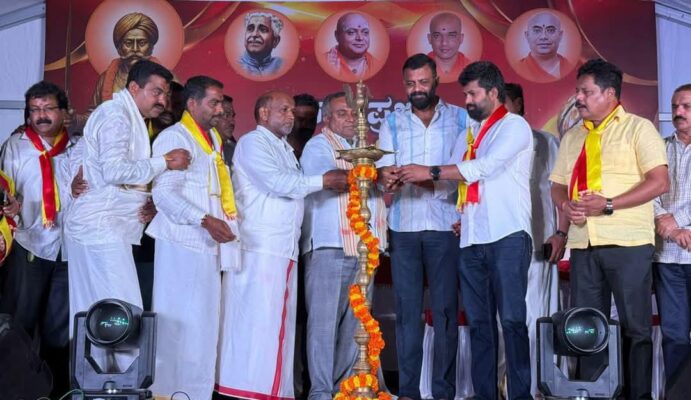 ಮಳೆಯ ನಡುವೆಯೂ ನಾಡಪ್ರಭು ಶ್ರೀ ಕೆಂಪೇಗೌಡರ 516 ನೇ ಜಯಂತಿ ಕಾರ್ಯಕ್ರಮವನ್ನು ಕೆ ಆರ್ ಕ್ಷೇತ್ರದ ಶಾಸಕರಾದ ಟಿ ಎಸ್ ಶ್ರೀವತ್ಸ, ಮಾಜಿ ಸಂಸದ ಪ್ರತಾಪ್ ಸಿಂಹ, ವಿಧಾನಪರಿಷತ್ ಸದಸ್ಯ ಮಂಜೇಗೌಡ, ರಾಜ್ಯ ಒಕ್ಕಲಿಗರ ಸಂಘದ ಕಾಮಗಾರಿ ಅಧ್ಯಕ್ಷ ಸಿ.ಜಿ ಗಂಗಾಧರ್, ಕೆ.ವಿ ಶ್ರೀಧರ್, ರವಿಕುಮಾರ್ ಅವರುಗಳು ದೀಪ ಬೆಳಗಿಸಿ ಉದ್ಘಾಟಿಸಿದರು.