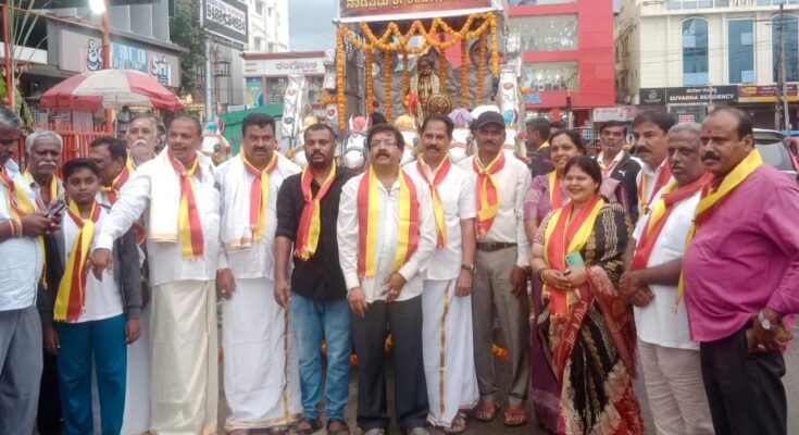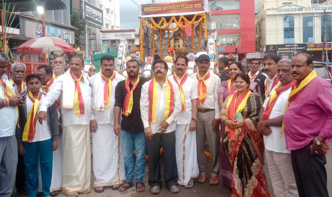 ಮೈಸೂರಿನ ಕುವೆಂಪು ನಗರ ಕಾಂಪ್ಲೆಕ್ಸ್ ನಿಂದ ಕಲಾತಂಡಗಳು ಹಾಗೂ ನಾಡಪ್ರಭು ಕೆಂಪೇಗೌಡರ ಪುತ್ಥಳಿಯೊಂದಿಗೆ ಹೊರಟ ಮೆರವಣಿಗೆ ಮೈಸೂರಿನ ಕುವೆಂಪು ನಗರ ಕಾಂಪ್ಲೆಕ್ಸ್, ಆಂಜನೇಯ ಸ್ವಾಮಿ ದೇವಸ್ಥಾನದಿಂದ ಅಪಾರ ಜನಸ್ತೋಮದೊಂದಿಗೆ ಹೊರಟು ವಿವೇಕಾನಂದ ವೃತ್ತದವರೆಗೆ ಅದ್ದೂರಿಯಾಗಿ ಸಾಗಿತು.