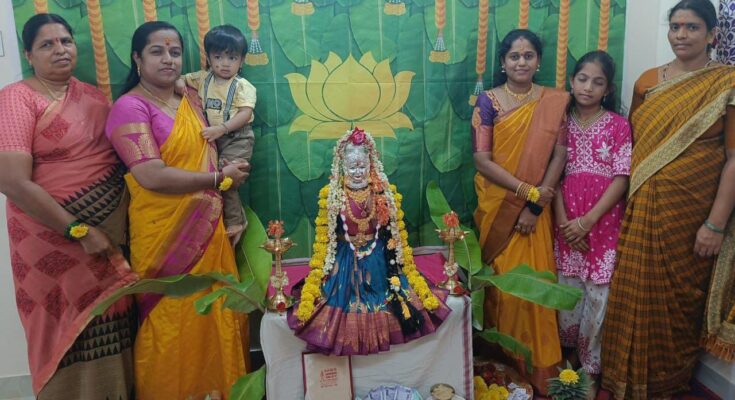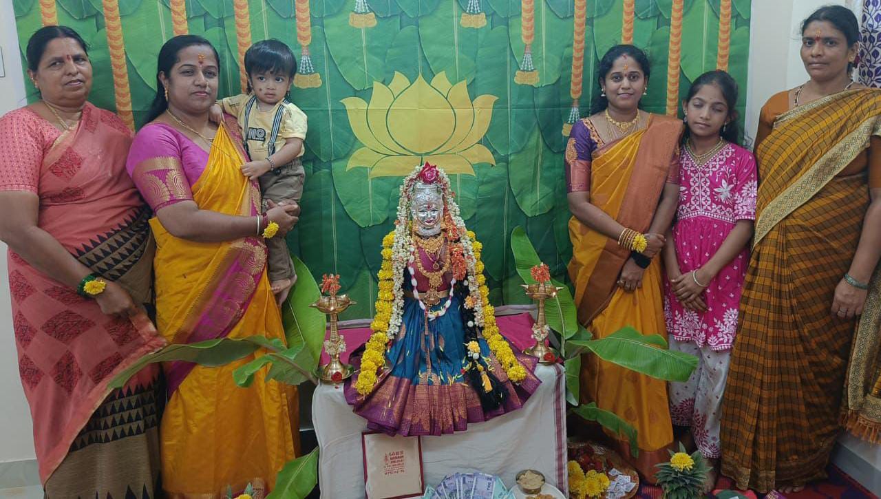 ಮೈಸೂರು: ಮಹಿಳೆಯರಿಗಾಗಿ ನೀಡಿರುವ ಸರ್ಕಾರದ ಮಹತ್ವದ ಯೋಜನೆಯಲ್ಲಿ ಒಂದಾದ ಗೃಹಲಕ್ಷ್ಮಿ ಹಣದಲ್ಲಿ ಮೈಸೂರಿನ ನಿವಾಸಿಯೊಬ್ಬರು ವರಮಹಾಲಕ್ಷ್ಮಿ ಹಬ್ಬ ಆಚರಿಸಿದ್ದಾರೆ.