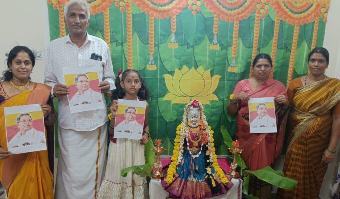 ಆಲನಹಳ್ಳಿ ನಿವಾಸಿ ಜ್ಯೋತಿ ಮಹದೇವ ಸ್ವಾಮಿ ಅವರ ಮನೆಯವರು ಪೂಜಾ ಸಂದೃ ಮುಖ್ಯಮಂತ್ರಿ ಸಿದ್ದರಾಮಯ್ಯ ಅವರ ಭಾವಚಿತ್ರ ಹಿಡಿದು ವರಮಹಾಲಕ್ಷ್ಮಿ ಹಬ್ಬವನ್ನು ಆಚರಿಸುವ ಮೂಲಕ ಅಭಿಮಾನ ಮೆರೆದು ವಿಶೇಷವಾಗಿ ಗಮನ ಸೆಳೆದಿದ್ದಾರೆ.