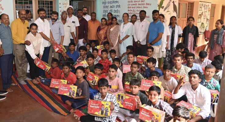 ಮೈಸೂರಿನ ತಿಲಕ್ ನಗರದಲ್ಲಿರುವ ಶ್ರವಣ ದೋಷವುಳ್ಳ ಮಕ್ಕಳ ಸರ್ಕಾರಿ ಶಾಲೆಯಲ್ಲಿ ಮಕ್ಕಳ ದಿನಾಚರಣೆ ಆಚರಿಸಿ, ಜೀವದಾರ ರಕ್ತ ನಿಧಿ ಕೇಂದ್ರದ ವತಿಯಿಂದ 60ಕ್ಕೂ ಹೆಚ್ಚು ಮಕ್ಕಳಿಗೆ ಉಚಿತ ಶೂ ವಿತರಿಸಲಾಯಿತು.