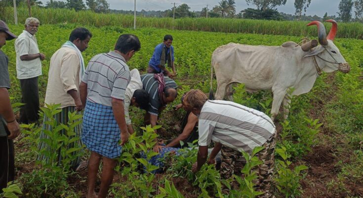 ಅವರು ತಮ್ಮದೇ ಜಮೀನಿನಲ್ಲಿ ಹಿಪ್ಪುನೇರಳೆ ಉಳುಮೆ ಮಾಡುತ್ತಿದ್ದರು.