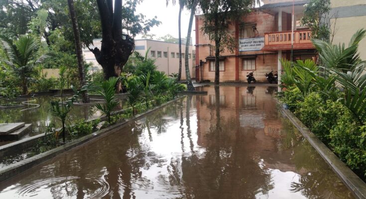 ಶ್ರೀರಂಗಪಟ್ಟಣದ ಸಮಾಜ ಕಲ್ಯಾಣ ಇಲಾಖೆಯ ವಿದ್ಯಾರ್ಥಿ ನಿಲಯ ನೀರಿನಿಂದ ಜಲಾವೃತವಾಗಿದೆ.